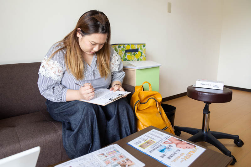 カウンセリングでは生活や普段のスキンケア方法、現在のお肌の悩みを聞き、一人ひとりにあったスキンケアを施していきます。