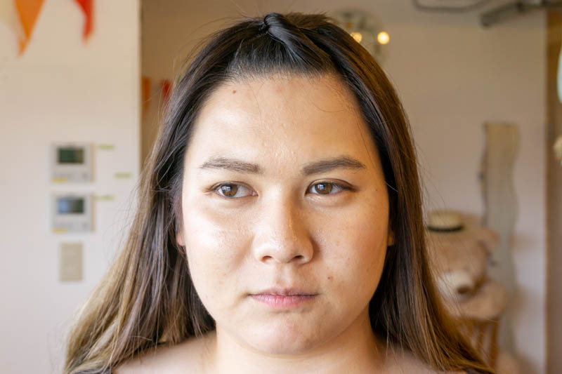 まずは今回のお肌のトリートメントで使用するクレンジングや美容液を実際にお肌で試します。