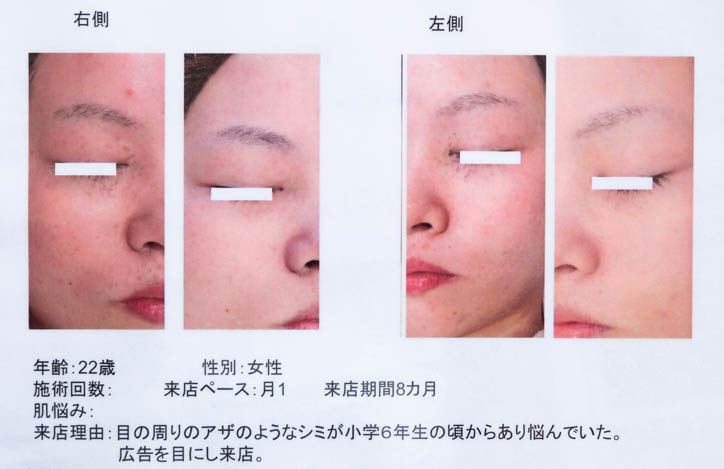 「シミの範囲や深さによって個人差はありますが、コチラのお客様は8回の施術でかなりキレイになりました。」