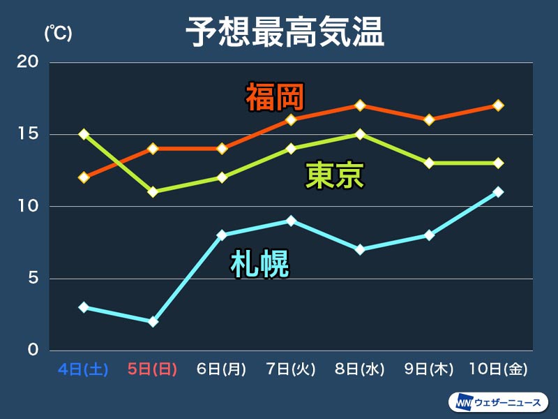 からの記事と詳細 ( 来週は寒気南下せず気温高め 季節の歩みは少し足踏み - ウェザーニュース )