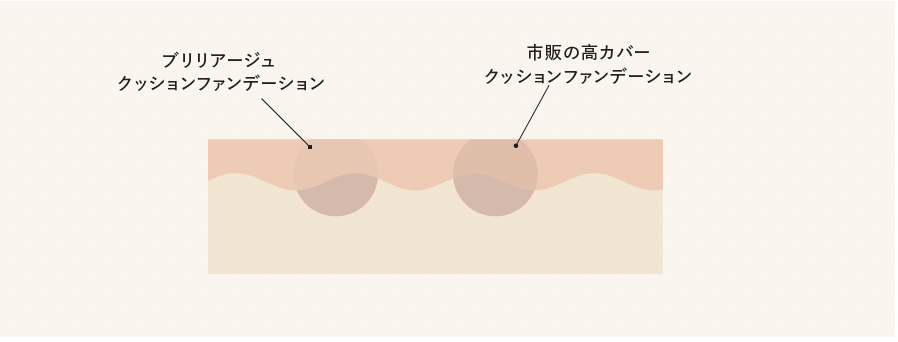 リキッドを含浸させたクッションベースは、スポンジに吸い込みすぎないよう、硬めの素材(強化ポリエステル)を厳選。リキッドファンデーションではかなわない、フラットで均一なつきを実現させました。